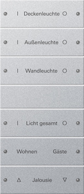 Gira 220626 Набор клавиш 6-местный (3+3), гравировка, цвет: Серый, оттенок: Алюминиевый, лакированный