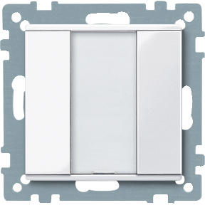 Со встроенным шинным соединителем. Кнопочный выключатель с 2 клавишами, индикатором рабочего состояния и полем для надписи. Индикатор рабочего состояния можно использовать в качестве подсветки для ориентации. Прибор соединяется с шиной через соединительную клемму шины.
