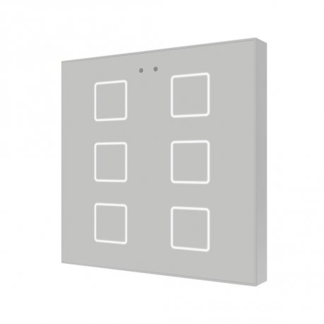 Zennio ZVIF6V2S Выключатель сенсорный KNX Flat 6 V2, 6-кнопочный, LED индикация, 2хAI/DI, термостат, датчик температуры, датчик приближения, пластиковая рамка, 81х81х9 мм, в установочную коробку, цвет серебро