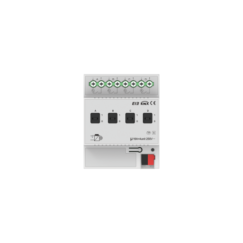 Номинальный ток составляет 16A задержки времени включения/выключения, лестничное освещение, сцена, стиль управления: 8-бит/1-бит, логическое управление, ответ на запрос значения состояния, принудительная работа и функция предохранителя безопасности, настройка пороговых функций, контроль драйвера электротермического клапана, Выбор положения реле после отключения и восстановления напряжения шины.