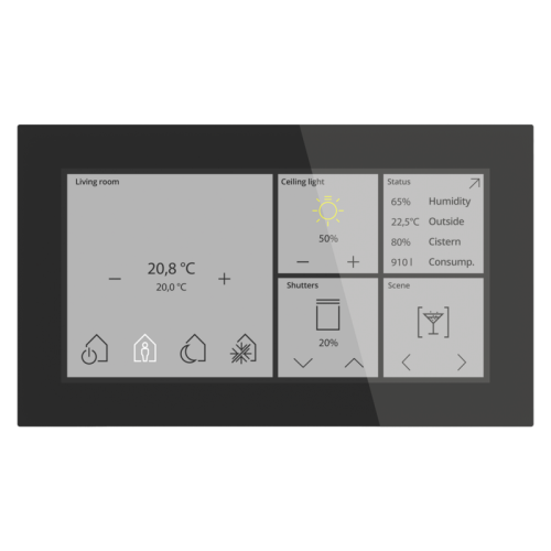 «Такой же индивидуальный, как и вы» — девиз новой многофункциональной кнопки MDT, которая впечатляет своим высококачественным дизайном. Горизонтально и вертикально монтируемый, 6-дюймовый дисплей можно индивидуально разделить с помощью ETS и настроить с помощью цветов, логотипа или фонового изображения. Круговой ориентационный свет завершает современный дизайн Glass Touch Smart. Оснащенный до 64 функций, до 12 дисплеев состояния можно визуализировать на отдельных уровнях. Кнопка оснащена датчиком температуры и контроллером комнатной температуры для режима нагрева и охлаждения.<br><br />