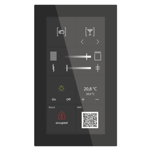 «Такой же индивидуальный, как и вы» — девиз новой многофункциональной кнопки MDT, которая впечатляет своим высококачественным дизайном. Горизонтально и вертикально монтируемый, 6-дюймовый дисплей можно индивидуально разделить с помощью ETS и настроить с помощью цветов, логотипа или фонового изображения. Круговой ориентационный свет завершает современный дизайн Glass Touch Smart. Оснащенный до 64 функций, до 12 дисплеев состояния можно визуализировать на отдельных уровнях. Кнопка оснащена датчиком температуры и контроллером комнатной температуры для режима нагрева и охлаждения.<br><br />