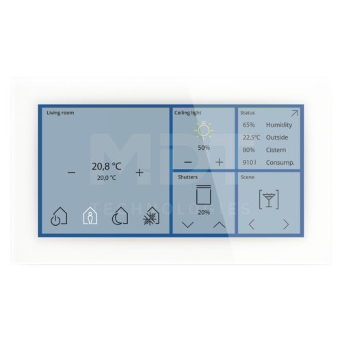 «Такой же индивидуальный, как и вы» — девиз новой многофункциональной кнопки MDT, которая впечатляет своим высококачественным дизайном. Горизонтально и вертикально монтируемый, 6-дюймовый дисплей можно индивидуально разделить с помощью ETS и настроить с помощью цветов, логотипа или фонового изображения. Круговой ориентационный свет завершает современный дизайн Glass Touch Smart. Оснащенный до 64 функций, до 12 дисплеев состояния можно визуализировать на отдельных уровнях. Кнопка оснащена датчиком температуры и контроллером комнатной температуры для режима нагрева и охлаждения.<br><br />
