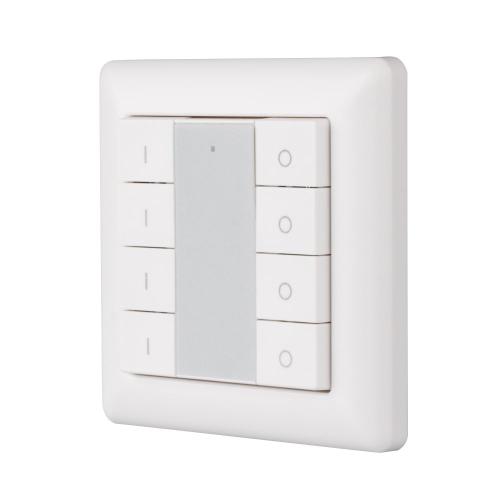 Накладная пластиковая панель белого цвета с кнопочным управлением, предназначенная для включения и выключения световых сцен в системах управления светом KNX. Позволяет осуществлять включение/выключение, диммирование, управление шторами и жалюзи, управлять сценами. Поддерживает управление с помощью 8 настраиваемых кнопок. Устройство совместимо с исполнительными устройствами стандарта KNX, в том числе, мировых производителей ABB, SCHNEIDER ELECTRIC, SIEMENS, ZENNIO и другими. Удобное и точное управление при помощи отдельных механических кнопок для каждой функции. Питание от шины KNX. Габариты устройства составляют 86х86х15 мм, установка в стандартную монтажную коробку. Пластиковый корпус, цвет белый. Стандартная рамка входит в комплект поставки.