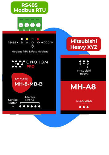 ONOKOM MH-8-MB-B Шлюз для управления системами кондиционирования Mitsubishi Heavy(разъем XYZ) по ModBus RTU протоколу. Кондиционеры 2001 - 2014 годов выпуска