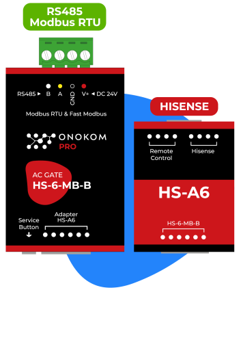 ONOKOM HS-6-MB-B Шлюз для управления полупромышленными системами кондиционирования Hisense(разъем CN18 WIRED CON) по ModBus RTU протоколу