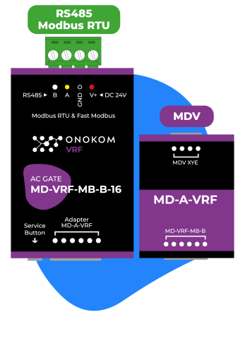ONOKOM MD-VRF-MB-B-16 Шлюз для управления 16 внутренними блоками VRF системы кондиционирования MDV(разъем XYE) по ModBus RTU протоколу