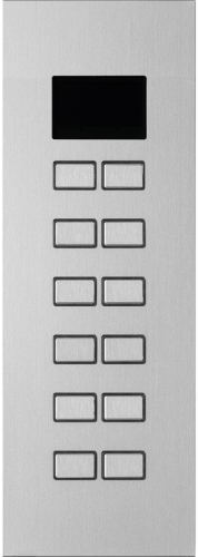 12-канальная панель управления для коммутации функций KNX, включая RGB-подсветку кнопок по всему периметру для отображения состояния, передатчик звукового сигнала, графический OLED-дисплей и функцию бесконтактного включения для отображения состояния и функций. Встроенный датчик температуры и контроллер комнатной температуры для отопления и охлаждения.