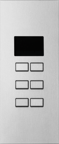 6-секционная панель управления для коммутации функций KNX, включая RGB-подсветку кнопок по всему периметру для отображения состояния, передатчик звукового сигнала, графический OLED-дисплей и функцию бесконтактного пробуждения для отображения состояния и функций. Встроенный датчик температуры и контроллер комнатной температуры для отопления и охлаждения.