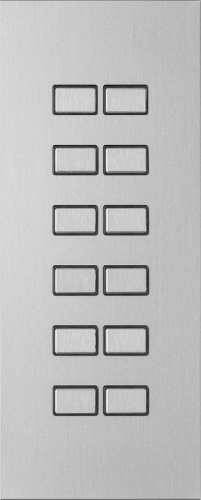 12-канальная панель управления для функций переключения KNX, включая круговую RGB-подсветку кнопок для отображения состояния и передатчик звукового сигнала.