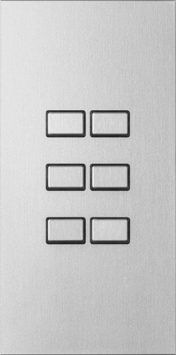 6-позиционная панель управления для функций переключения KNX, включая круговую RGB-подсветку кнопок для отображения состояния и передатчик звукового сигнала.