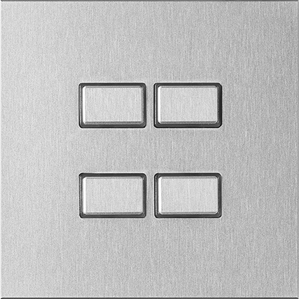 4-секционная панель управления для функций переключения KNX, включая круговую RGB-подсветку кнопок для отображения состояния и передатчик звукового сигнала.
