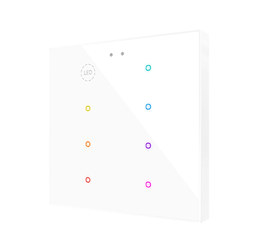 Настраиваемые ёмкостные сенсорные выключатели с RGB-подсветкой серии Flat с датчиком приближения и плоской конструкцией (9 мм). Создавайте уникальные дизайны, используя изображения, значки, тексты или логотипы, напечатанные на закалённом стекле. Доступны версии с 1, 2, 4, 6 или 8 кнопками, все с подсвечиваемыми значками, которые адаптируются к окружающему освещению и датчику приближения. Flat RGB включает в себя внутренний датчик температуры и термостат, а также 2 аналого-цифровых входа, которые можно настроить как бинарные входы, датчики, кнопки, датчики температуры или датчики движения. Совместим с KNX Secure.