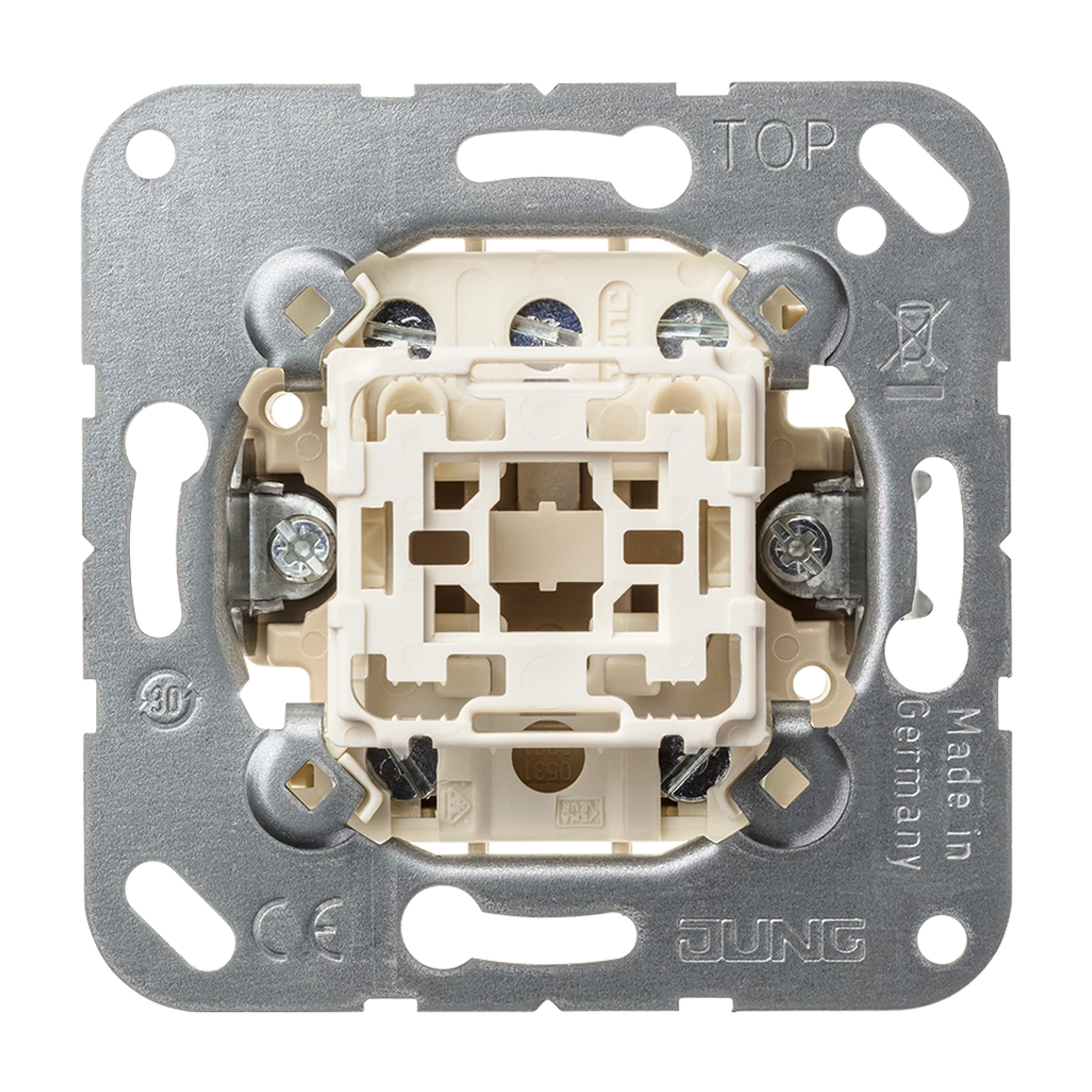 Jung 531-41 U Одноклавишный механизм кнопок без фиксации, Кнопка с нормально разомкнутыми контактами 2 x 2 и нейтральным положением
