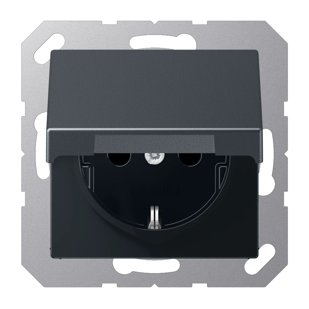 Jung A 1521 BFKIKL ANM SCHUKO®-розетка, 16 A 250 В ~, с дополнительной защитой,, Откидная крышка, Лакированный термопласт, Серия A, матовый антрацит