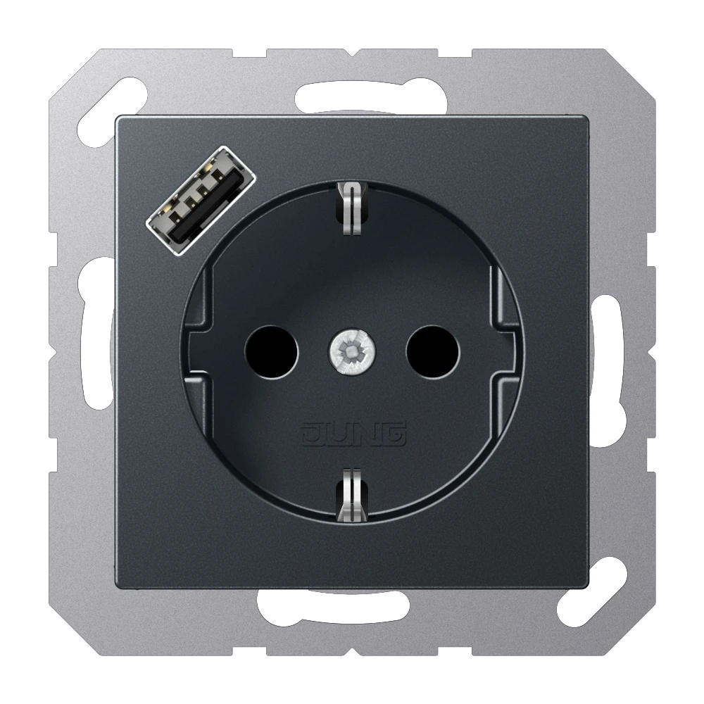 Jung A 1520-18 A ANM SCHUKO®-розетка 16 A 250 В ~, with USB charger 1 x type A, с дополнительной защитой,, Серия A, матовый антрацит