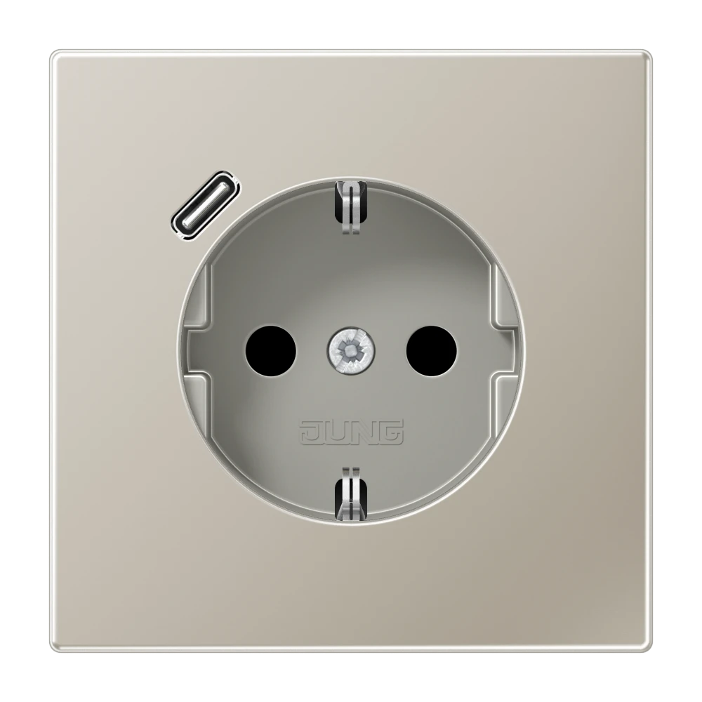 Jung ES 1520-18 C SCHUKO®-розетка 16 A 250 В ~, с зарядным устройством USB 1 x тип C, с дополнительной защитой,, Серия LS, нержавеющая сталь