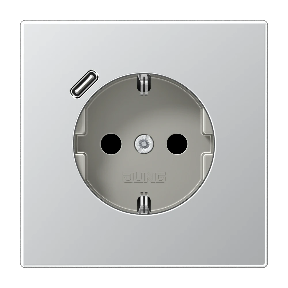 Jung AL 1520-18 C SCHUKO®-розетка 16 A 250 В ~, с зарядным устройством USB 1 x тип C, с дополнительной защитой,, Серия LS, алюминий