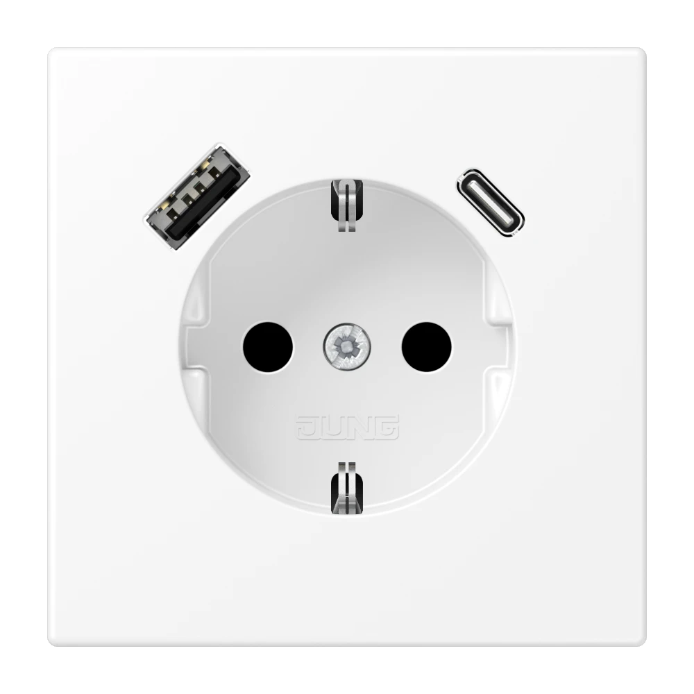 Jung LS 1520-15 CA WWM SCHUKO®-розетка 16 A 250 В ~, с зарядным устройством USB 1 x тип A + 1 x тип C, с дополнительной защитой,, Серия LS, белоснежный матовый