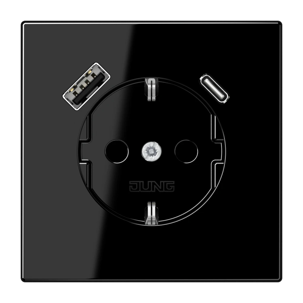 Jung LS 1520-15 CA SW SCHUKO®-розетка 16 A 250 В ~, с зарядным устройством USB 1 x тип A + 1 x тип C, с дополнительной защитой,, Серия LS, чёрный