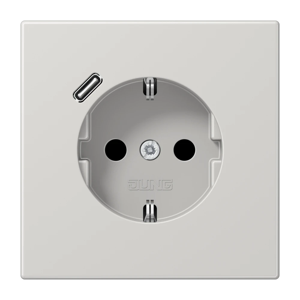 Jung LS 1520-18 C LG SCHUKO®-розетка 16 A 250 В ~, с зарядным устройством USB 1 x тип C, с дополнительной защитой,, Серия LS, светло-серый