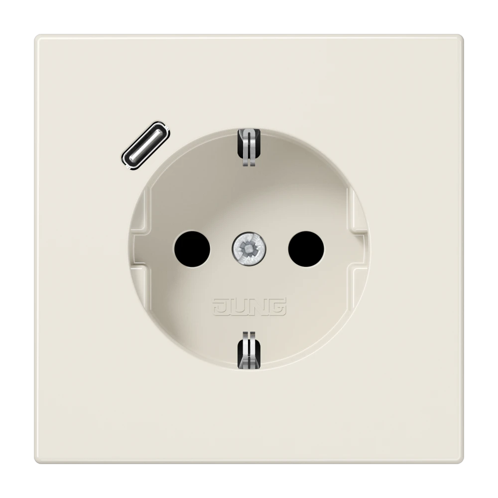 Jung LS 1520-18 C SCHUKO®-розетка 16 A 250 В ~, с зарядным устройством USB 1 x тип C, с дополнительной защитой,, Серия LS, слоновая кость