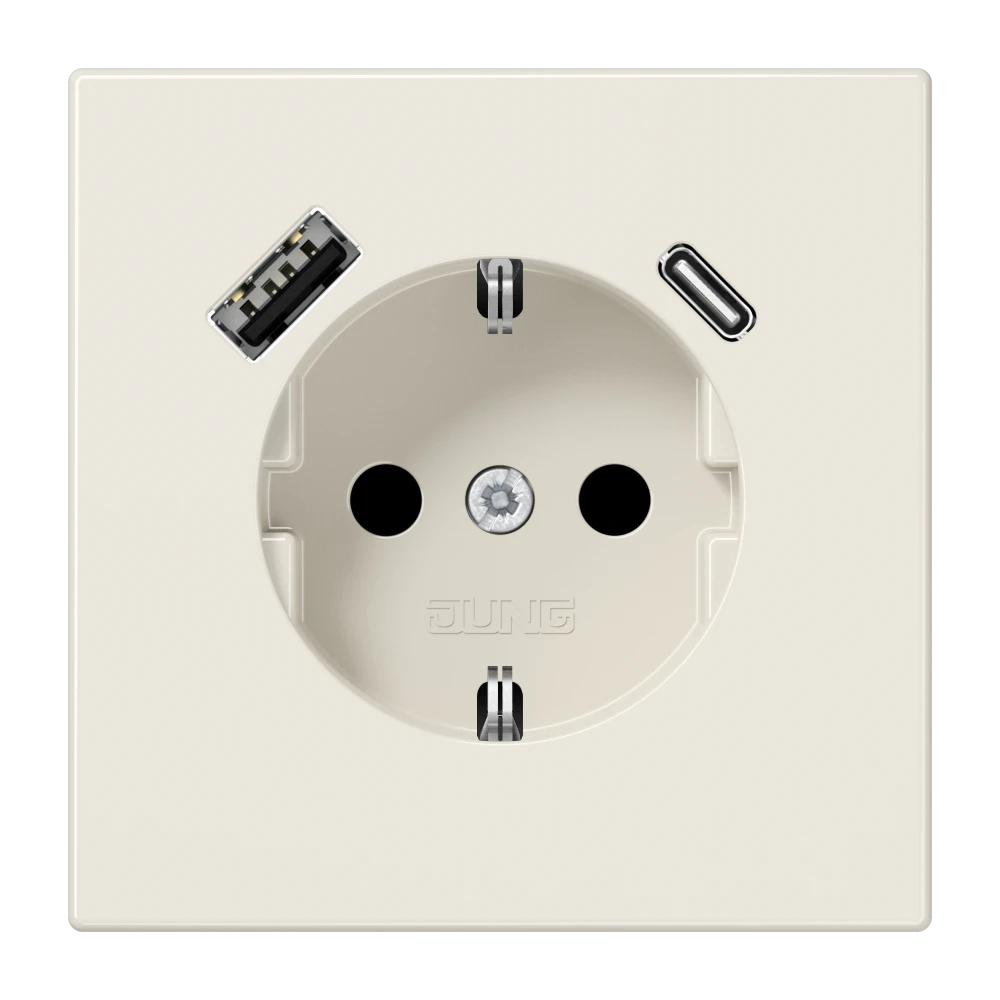 Jung LS 1520-15 CA SCHUKO®-розетка 16 A 250 В ~, с зарядным устройством USB 1 x тип A + 1 x тип C, с дополнительной защитой,, Серия LS, слоновая кость