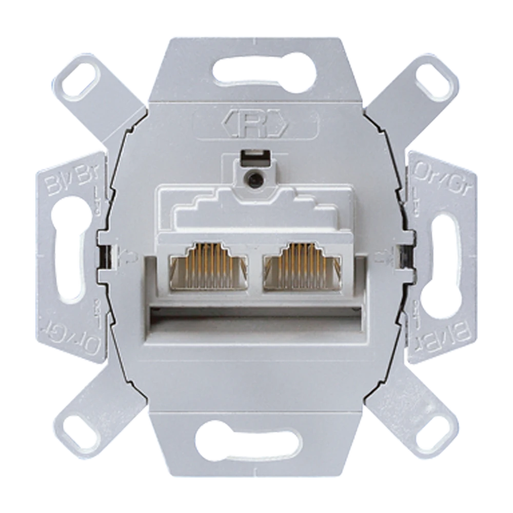 (винтовое крепление, без установочных захватов) для компьютерных сетей Соединительные клеммы LSA возможна прокладка кабеля со всеми разрядами без резких перегибов подходит для стандартных монтажных коробок RJ 45, категория 6 A , класс Е A (10 Гбит/сек / 500 МГц) Соответствует категории 6 A согласно ISO/IEC 11801 поправка 2 и категории 6А согласно TIA/EIA-568-B.2-10 2008 подходит для PoE + соотв. в IEEE 802.3at ≥ 1000 циклов вставок / удаления, подходит для RJ 11/12 Крышки: серия AS / A: арт.: A 569-2 BFPLUA .. серия CD: арт.: CD 569-2 UA .., CD 569-2 NAUA .., CD 590 KL LAN .. серия LS: арт.: LS 969-2 UA .., LS 969-2 NAUA .., .. 2969-2 UA .., .. 2969-2 NAUA .., LS 990 BF КЛ LAN .., .. 2990 КЛ LAN ..