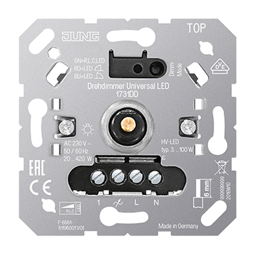 Jung 1731 DD Роторный диммер универсальный LED, со входом спутниковой вставки