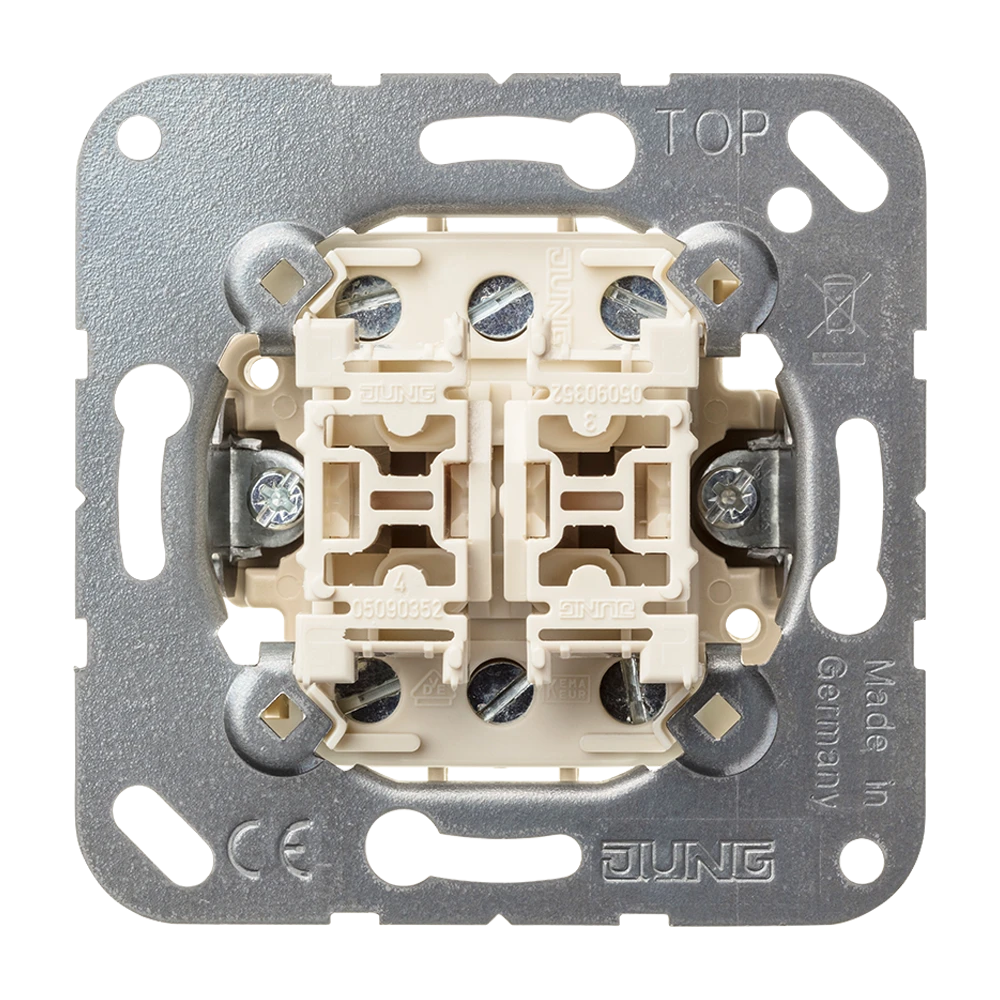 Jung 532-4 U Двухклавишный механизм кнопок без фиксации, клавиша в нейтральном положении, 2 x 1-pole, 2-way push-button with 4 floating 1-way NO contacts, rocker in neutral position