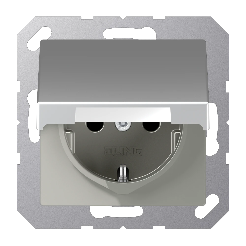 Jung A 1520 BFKIKL AL SCHUKO®-розетка, 16 A 250 В ~, с дополнительной защитой,, hinged lid, thermoplastic lacquered, Серия A, алюминий