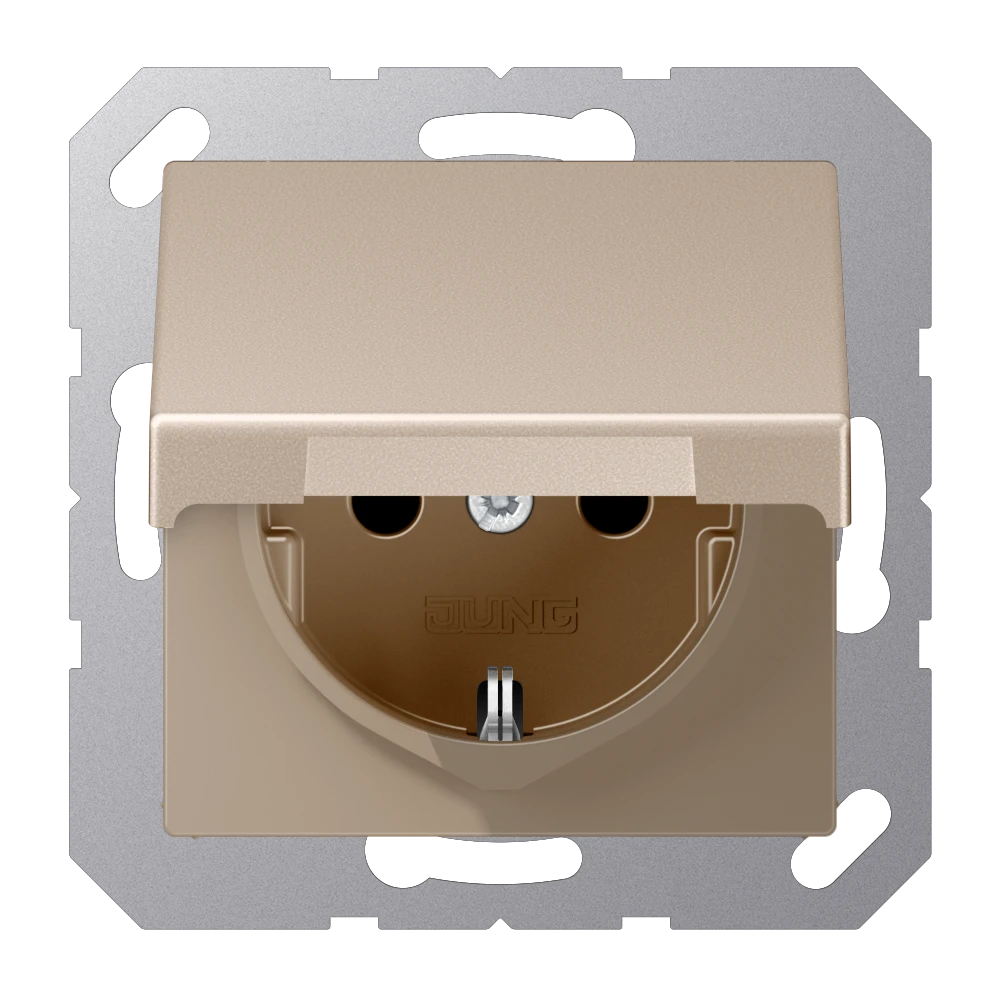 Jung A 1520 BFKIKL CH SCHUKO®-розетка, 16 A 250 В ~, с дополнительной защитой,, hinged lid, thermoplastic lacquered, Серия A, цвет шампанского