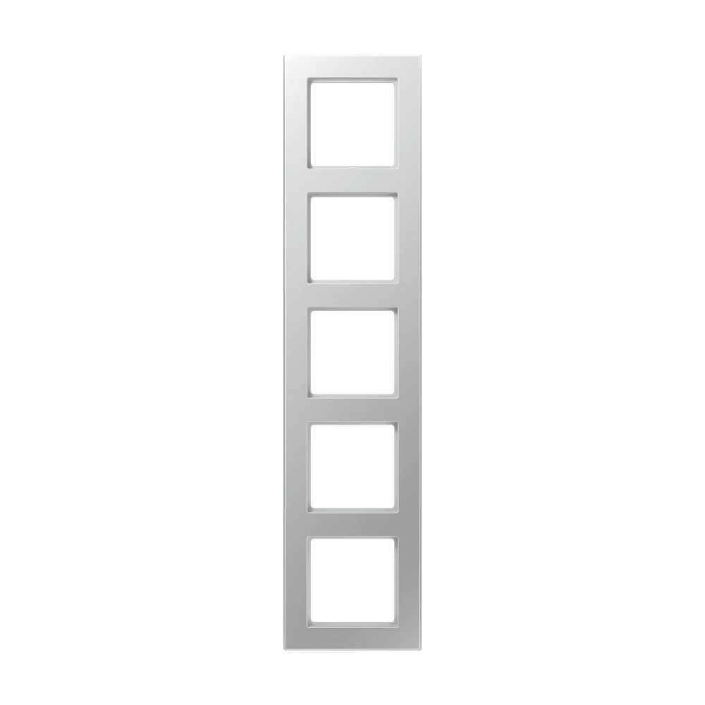 Jung A 5585 BF AL Рамка 5-ная, вертикальный и горизонтальный монтаж, Лакированный термопласт, A 550, алюминий