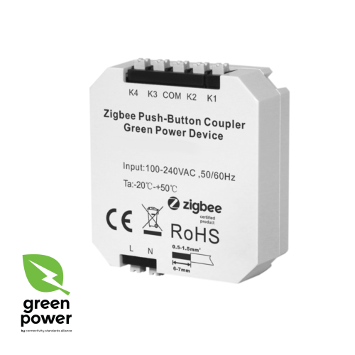 - Совместимо с универсальными Zigbee-шлюзами, поддерживающими работу с устройствами Green Power.