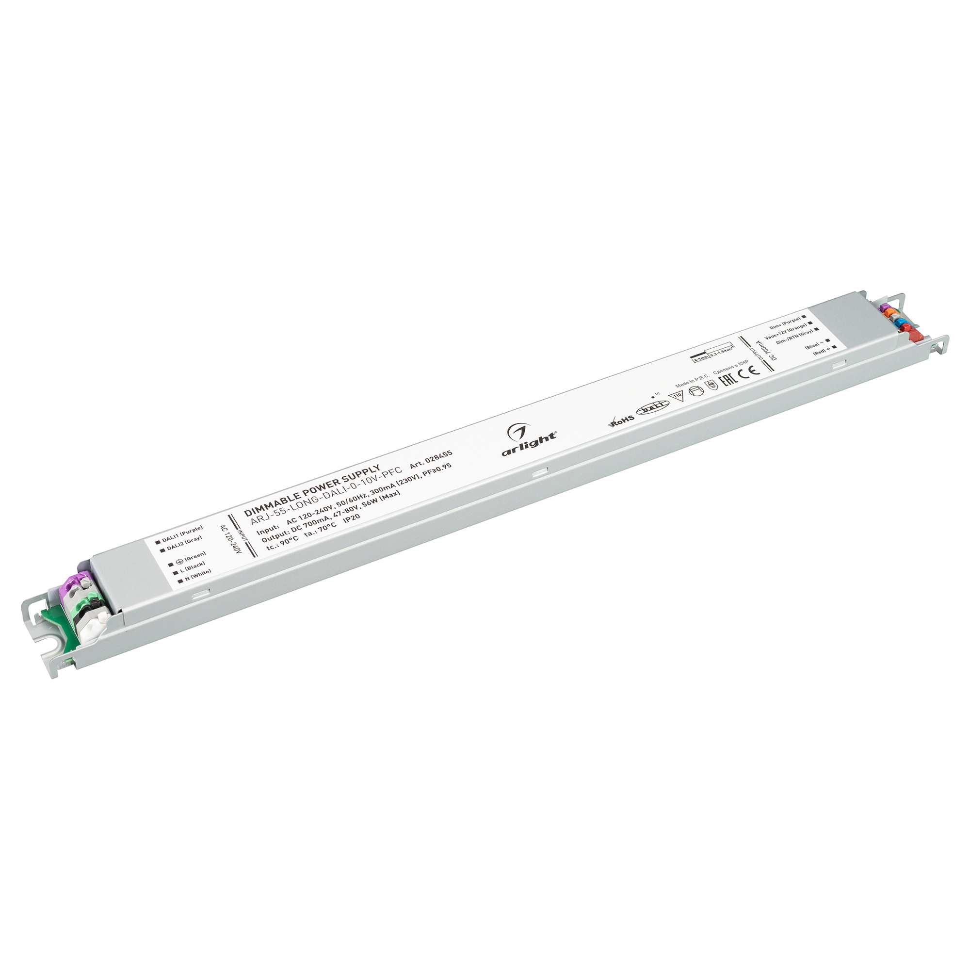 Arlight 028455 Блок питания ARJ-55-LONG-DALI-0-10V-PFC (56W, 700mA) (Arlight, IP20 Металл, 7 лет)
