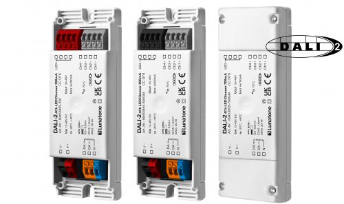 Драйвер светодиодов DALI (CC) с 4 независимыми каналами. Каждый канал имеет свой собственный DALI-адрес. В качестве альтернативы управлению DT6 устройство также поддерживает режимы работы Colour&Dim (подходит для светильников RGB и RGBW) и SwitchDim2 (управление через 2 переключателя без DALI). Доступен с входным напряжением от 12 В до 48 В постоянного тока, выходным напряжением от 3 В до 45 В и различными выходными токами до 500 мА/канал (разъем «общий плюс») или 700 мА/канал (разъем «общий минус»).