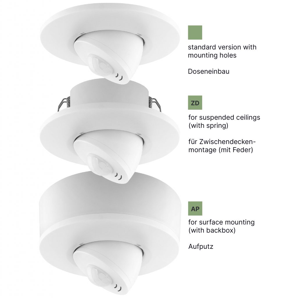 Для интеграции в системы с центральными блоками управления: датчик движения, освещенности, температуры, относительной влажности, атмосферного давления и качества воздуха. Компактный сенсорный модуль для систем DALI-2 с датчиком движения (PIR), измерением интенсивности света, температуры, относительной влажности, атмосферного давления и качества воздуха. Модуль собирает данные для системы управления зданием (в режиме экземпляра) – (DALI-2 CS Master, WAGO, Beckhoff и др.). Измеренные значения могут быть запрошены или автоматически инициировать события. Эта функциональность реализована через экземпляры DALI-2. Интеграцию DALI-2 CS можно настроить соответствующим образом в программном обеспечении DALI Cockpit. Несколько датчиков в одной группе будут синхронизироваться автоматически. Устройство питается непосредственно от шины DALI. Интеграция DALI-2 CS THP-AQ доступна в трех различных корпусах: для прямого монтажа на пустотелых стенах или монтажных коробках (стандартный), для подвесных потолков (с пружиной) или для поверхностного монтажа (с монтажной коробкой). Выравнивание головки датчика очень простое благодаря поворотной головке. Доступные цвета корпуса: чисто белый RAL 9010, белый RAL 9016 (-W16) или черный (-B). Заводская настройка: при поставке все события экземпляра активны. Использование с DALI-2 CS возможно без дополнительной настройки путем назначения устройств главному устройству DALI-2 CS Master.