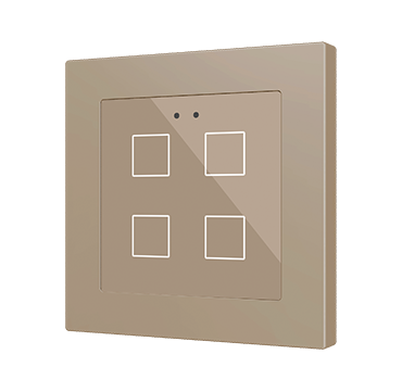 Zennio ZVIFR55X4C Flat RGB 55 X4. Емкостный сенсорный переключатель с RGB-подсветкой (55 x 55 мм), 4 кнопки, шампань