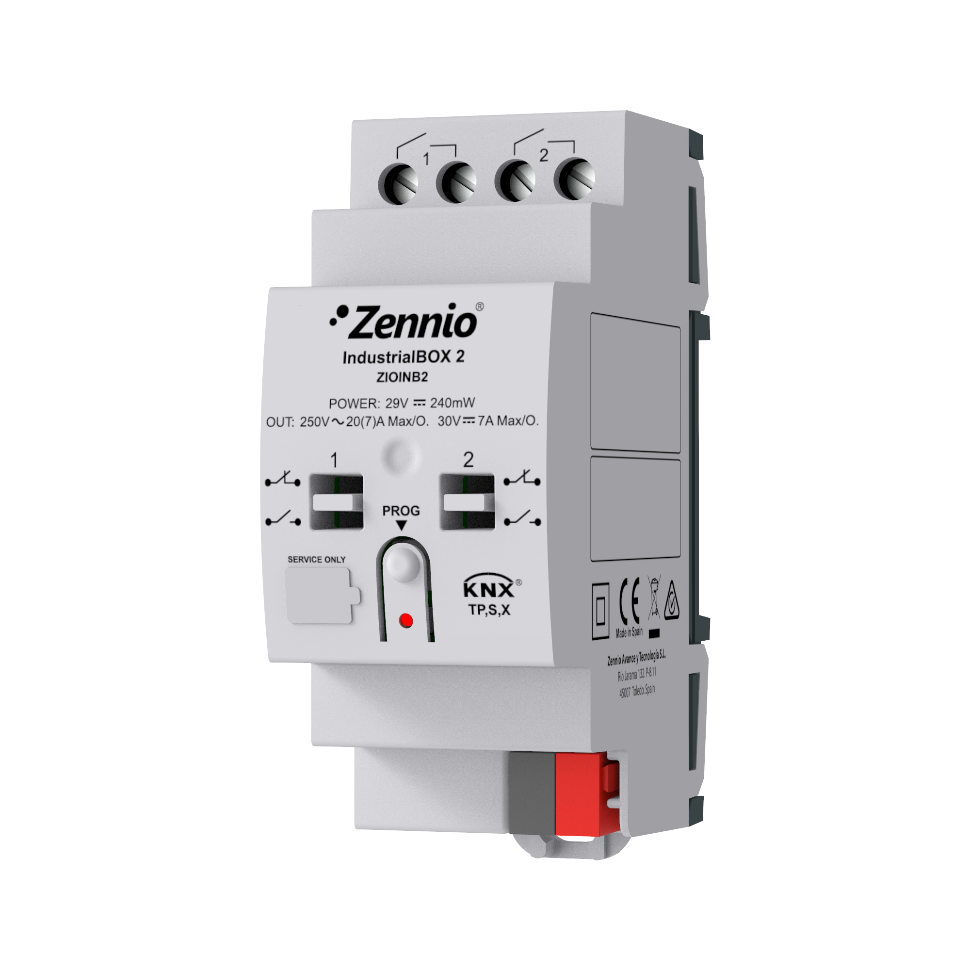 Zennio ZIOINB2 IndustrialBOX 2. Промышленный привод с 2 выходами (20 А, 200 мкФ), механическое ручное управление и KNX Secure