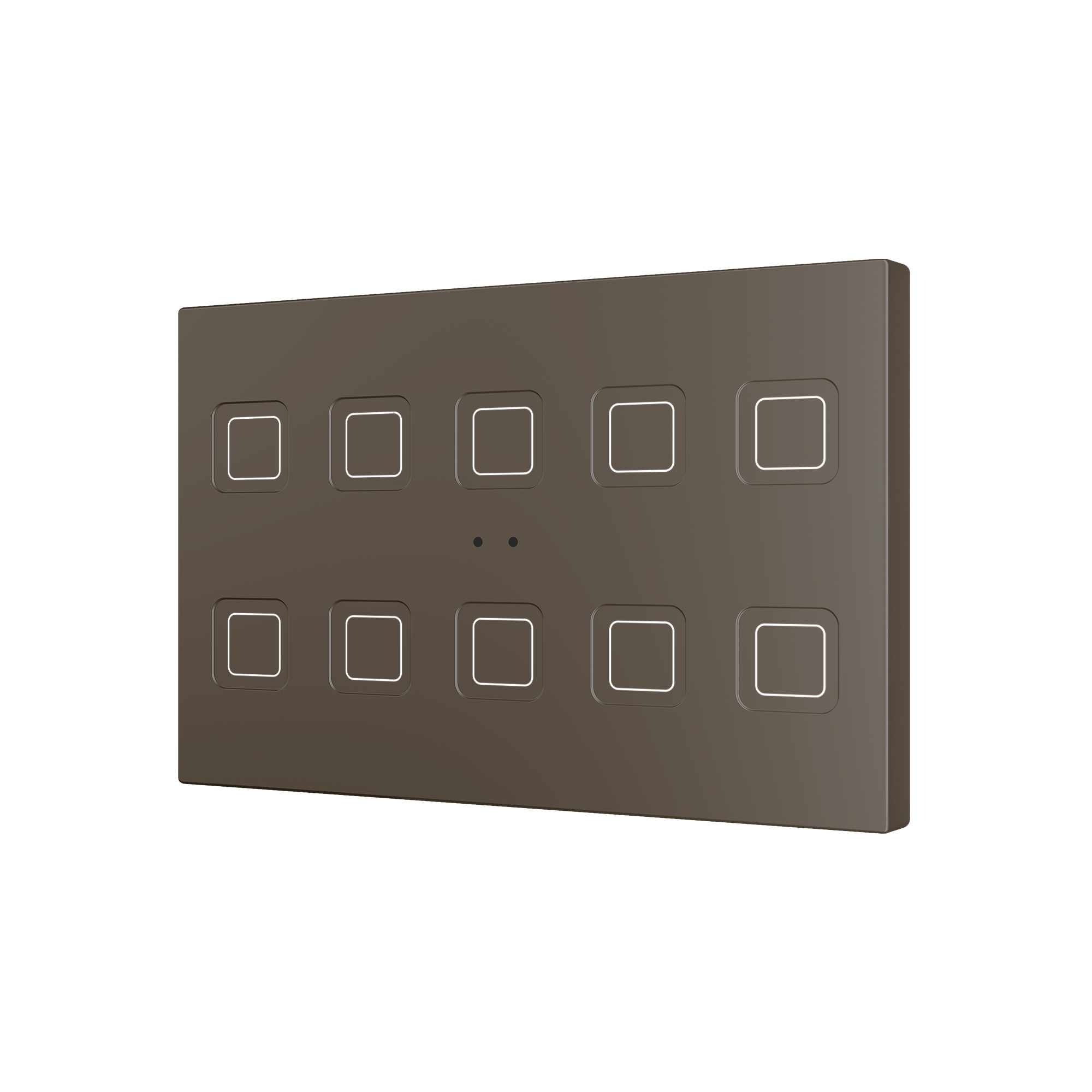 Сенсорные переключатели из поликарбоната с настраиваемыми значками. Доступны версии с 4, 6, 8 или 10 кнопками, все с RGB-подсветкой значков, адаптирующейся в зависимости от датчика приближения. Встроенный температурный датчик и термостат, а также 2 аналого-цифровых входа, которые можно настроить как бинарные входы, датчики, кнопки, температурные датчики или датчики движения. Установка в европейские, британские, итальянские, австралийские и американские монтажные коробки. Совместимость с KNX Secure.