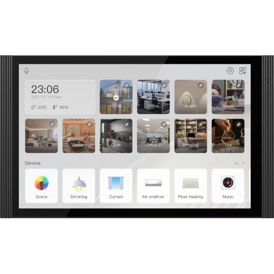 Функции: 10,1-дюймовый цветной MIPI-экран с разрешением 1280*800, поддержка емкостного сенсорного управления; поддержка сенсорного управления и звукового сигнала, интенсивность которого можно настраивать; основные функции, такие как переключение, диммирование (двухцветное), шторы, сценарии и передача значений; комплексное управление температурой для систем отопления, вентиляции и кондиционирования воздуха (HVAC), дискретного кондиционирования воздуха, подогрева пола, подачи свежего воздуха и т. д.; функция диммирования RGB и RGBW; мониторинг данных о качестве окружающего воздуха; мониторинг и отображение данных об энергопотреблении, таких как потребляемая мощность, ток и напряжение; функция таймера; 8 логических групп функций; 8 групп функций событий (каждая группа имеет 8 настраиваемых выходов).каналы)