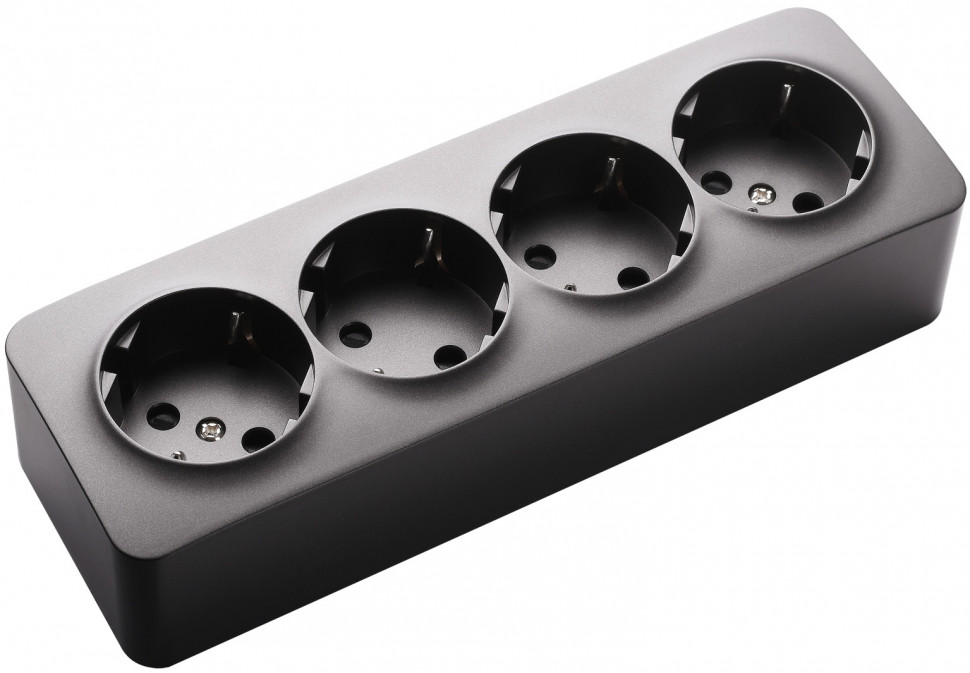 Jasmart Electric FS5508B Четырех местная розетка Schuko со шторками, накладного монтажа, (цвет антрацит) 16A 250V~ 2P+T, FS5508B