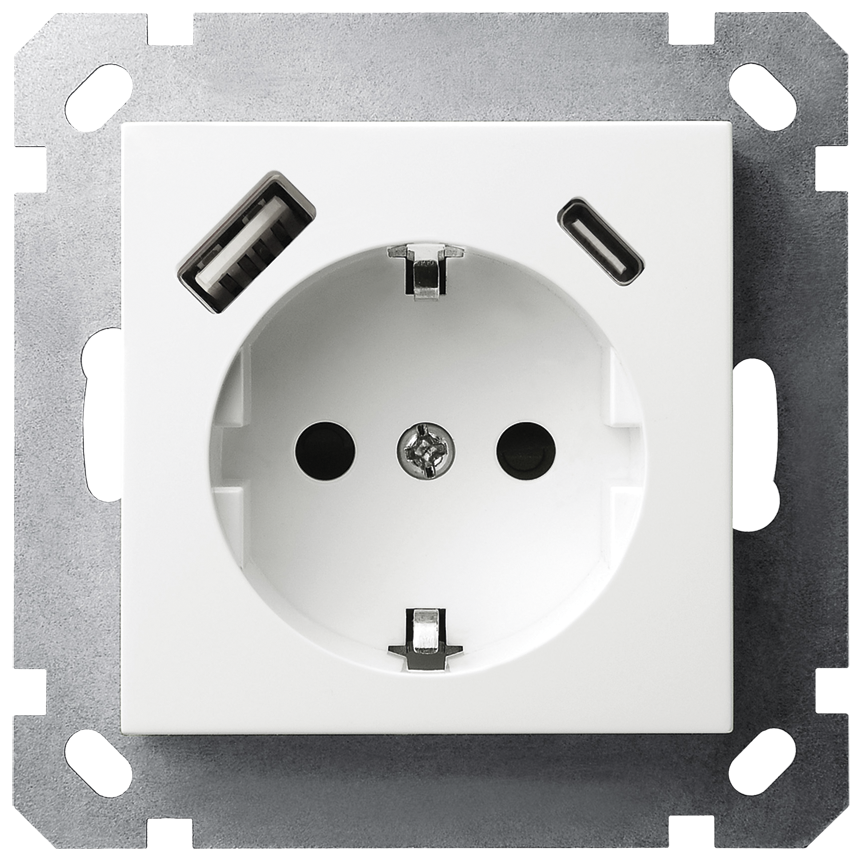 Jasmart Electric G5501USB-25W Розетка SCHUKO© с USB A+C с защитными шторками 16A 250V~ 2P+T USB 25W, цвет белый глянцевый, G5501USB-25W