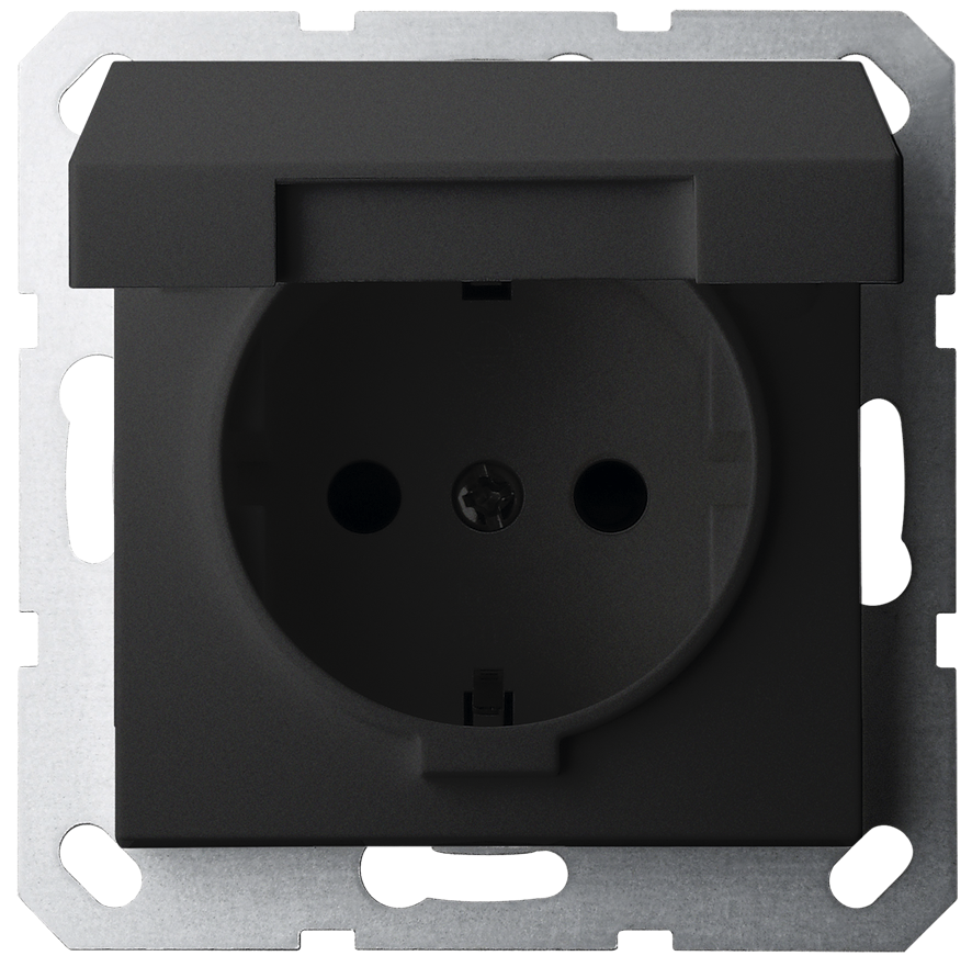 Jasmart Electric G5505PB Розетка SCHUKO© с крышкой и защитными шторками 16A 250V~ 2P+T, цвет черный матовый (soft touch), G5505PB