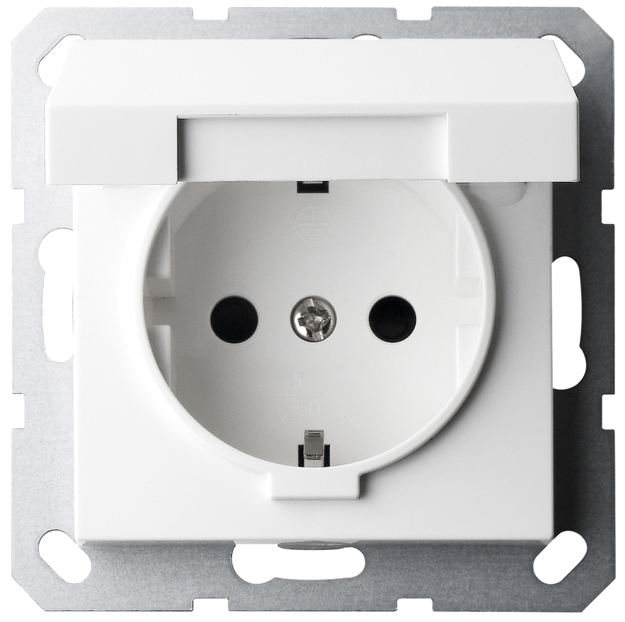 Jasmart Electric G5505W Розетка SCHUKO© с крышкой и защитными шторками 16A 250V~ 2P+T, цвет белый глянцевый, G5505W
