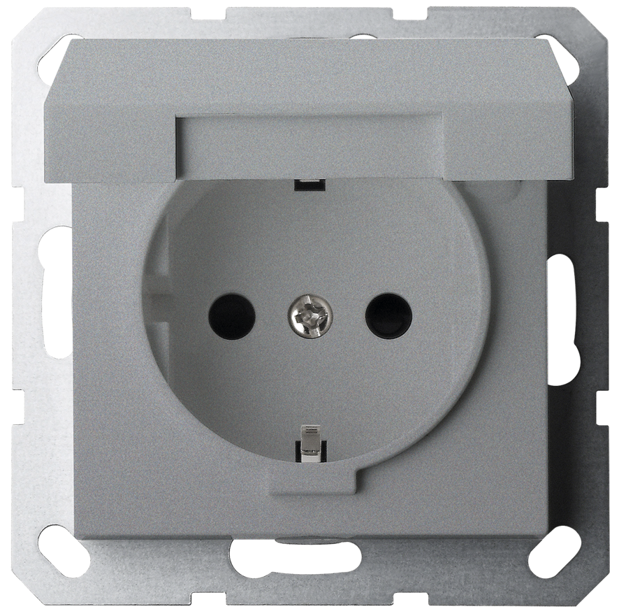 Jasmart Electric G5505S Розетка SCHUKO© с крышкой и защитными шторками 16A 250V~ 2P+T, цвет Алюминий, G5505S