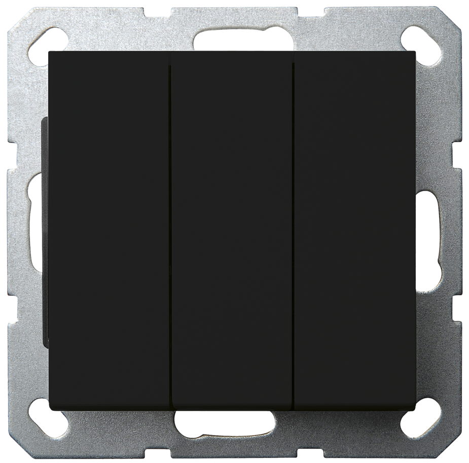 Jasmart Electric G3031PB Выключатель трехклавишный 10A 250V~с накладкой, цвет Черный матовый (soft touch) , G3031PB