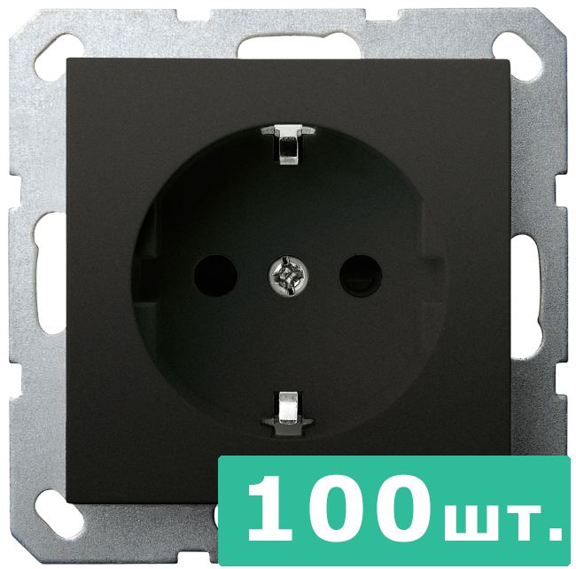 Розетка SHUKO© с защитными шторками 16A 250V~ 2P+T, цвет черный матовый (soft touch), JASMART, набор, 100 шт.