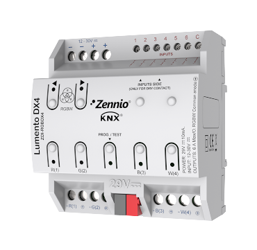 Представляем вам Zennio ZDI-RGBDX4 Lumento DX4 - многофункциональный контроллер для управления освещением в вашем умном доме по стандарту KNX. Этот контроллер позволяет создавать красивые и настраиваемые световые эффекты, используя светодиодные RGB-W ленты.