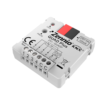 Аналогово-цифровой датчик. QUAD Plus - аналогово-цифровой датчик, обладающий широкими функциональными возможностями. Его 4 многофункциональных входа с оптической связью могут быть сконфигурированы как цифровые входы для датчиков и беспотенциальных кнопок, как температурные датчики или как датчик движения. В комплект поставки входят четыре комнатных термостата для систем управления отоплением/охлаждением.